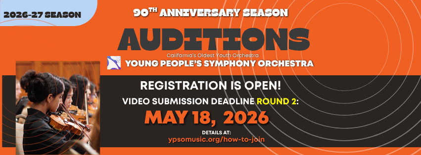 The Young People’s Symphony Orchestra (YPSO) invites passionate young musicians to be part of an unforgettable season of music, growth, and camaraderie. As the oldest youth orchestra in California, our mission is to guide young musicians to excellence in an orchestral setting while fostering lifelong friendships and skills.