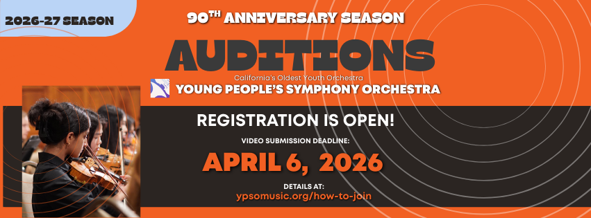 The Young People’s Symphony Orchestra (YPSO) invites passionate young musicians to be part of an unforgettable season of music, growth, and camaraderie. As the oldest youth orchestra in California, our mission is to guide young musicians to excellence in an orchestral setting while fostering lifelong friendships and skills.